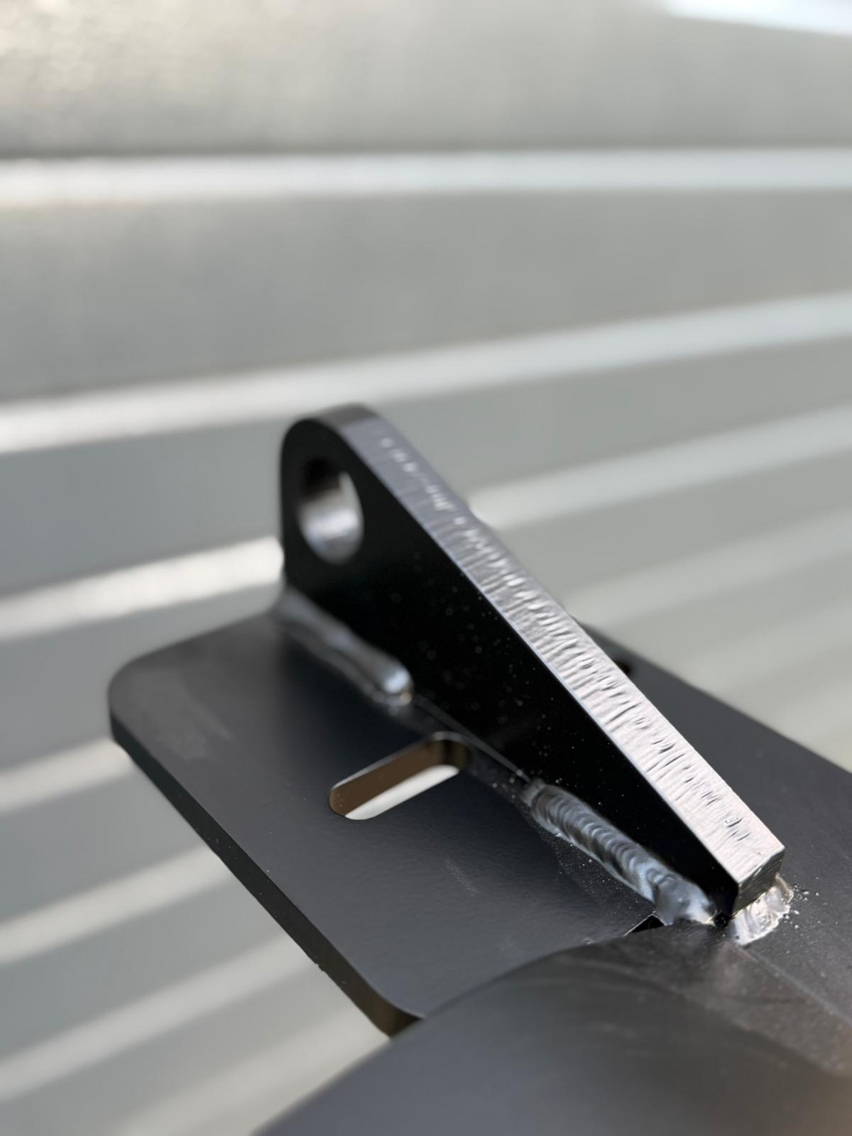 (Fotos zeigen den Prototyp an Jannik's Doka, die finale Version ist auf dem CAD-Rendering zu sehen und kommt aus Stahl mit schwarzer Pulverbeschichtung)